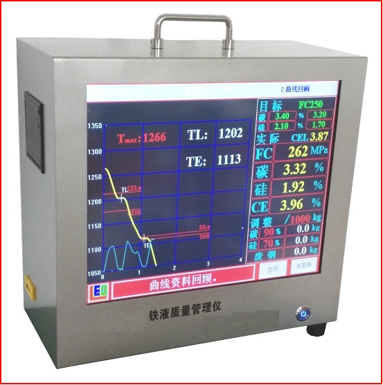 热分析仪与光谱化学分析不同的是热分析仪测量的是铸铁组织形成的过程,是铁水中所有元素不同含量对形成铸铁组织作用的综合结果,检测出的是铁水中的有效当量含量。
